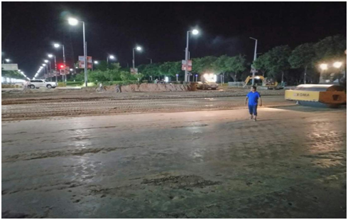 西環(huán)路平交口道路自建設(shè)以來,項目部克服時間緊、任務(wù)重、溝通難的實際困難,合理安排施工順序和時間,嚴格按照相關(guān)道路施工標準施工;廣大筑路員工冒著酷暑,加班加點,熱火朝天地奮戰(zhàn)在施工現(xiàn)場;為了保證施工安全,防止塵土和噪音污染,項目部在整個路段都設(shè)置了圍擋,利用大型挖機對路面進行開挖,人頭攢動,機聲隆隆,一片繁忙,為早日交工提供了充分保障。(徐堯)